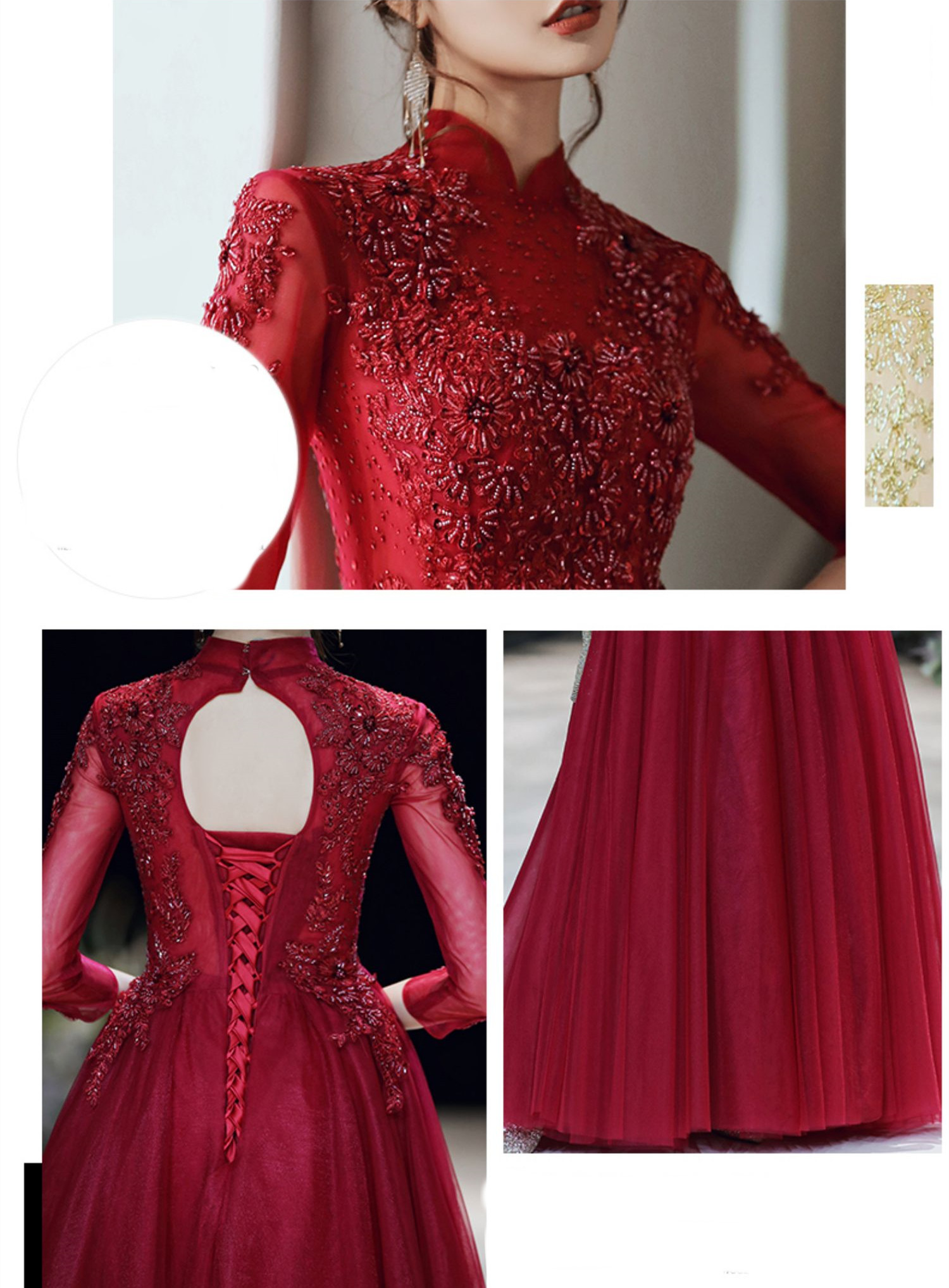 Long Sleeved Wine Red Banquet Temperament