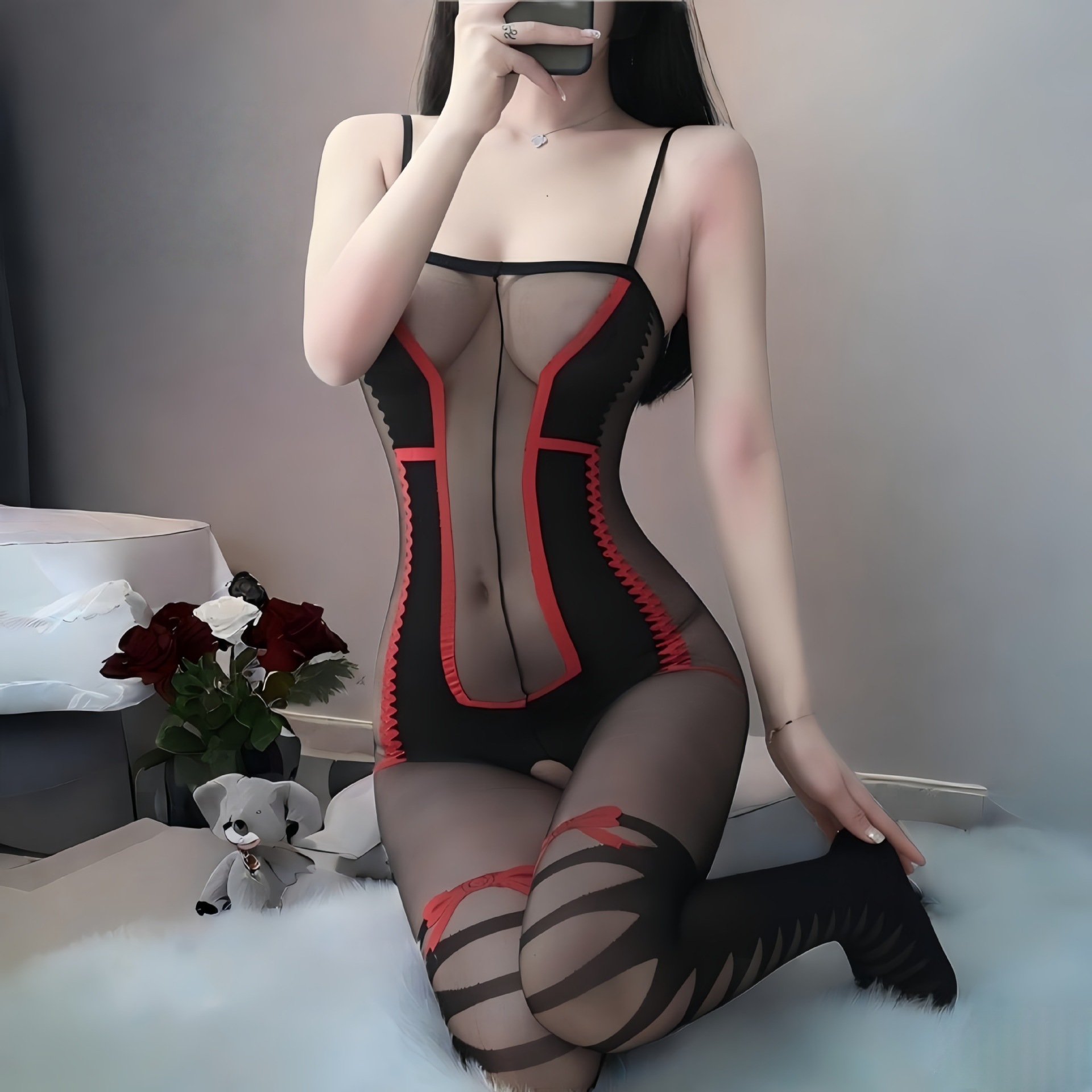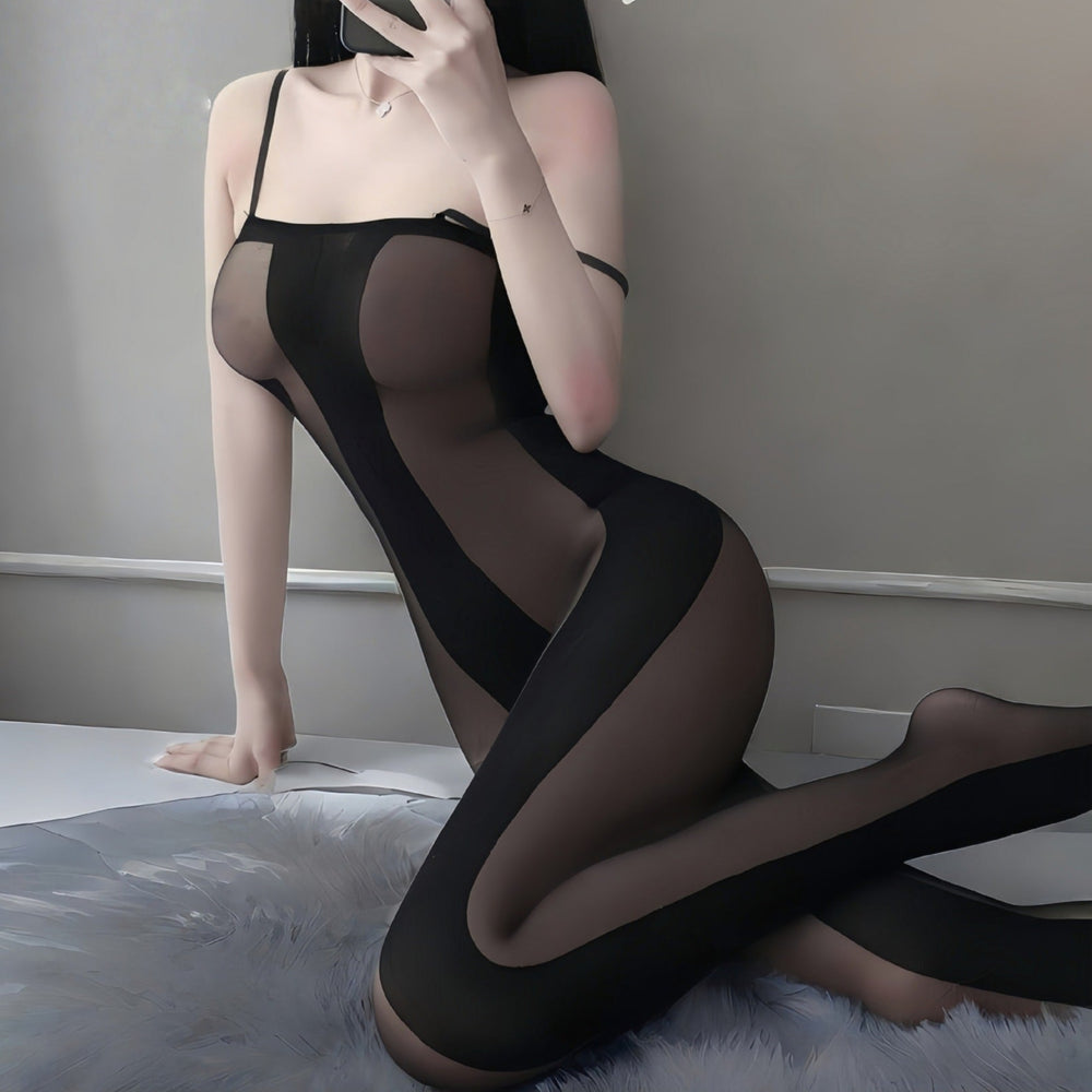 Sheer Mesh Lingerie Set with Jumpsuit & Stockings – Seductive & Elegant-SH-LNG-0123
